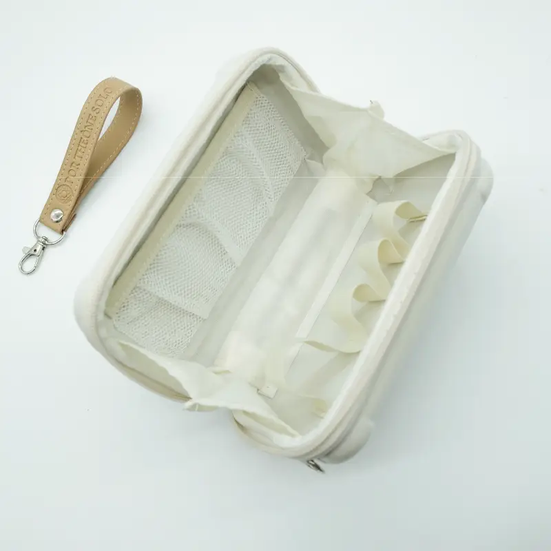 硬殼設計具備防壓、防潑水與耐刮特性,有效保護瓶瓶罐罐不變形、不外漏。內部多層分隔與彈性固定帶,收納有序、取用直覺,是商務出差與旅行的良伴。